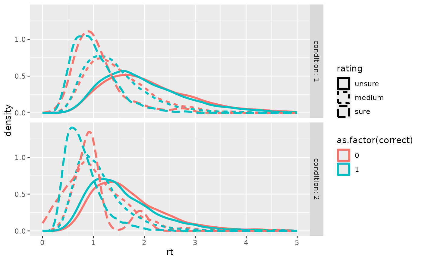 logical. Simulation is done on a trial basis with RTs outcome. If TRUE, the simulations will be aggregated over RTs to return only the distribution of response and confidence ratings. Default: FALSE.