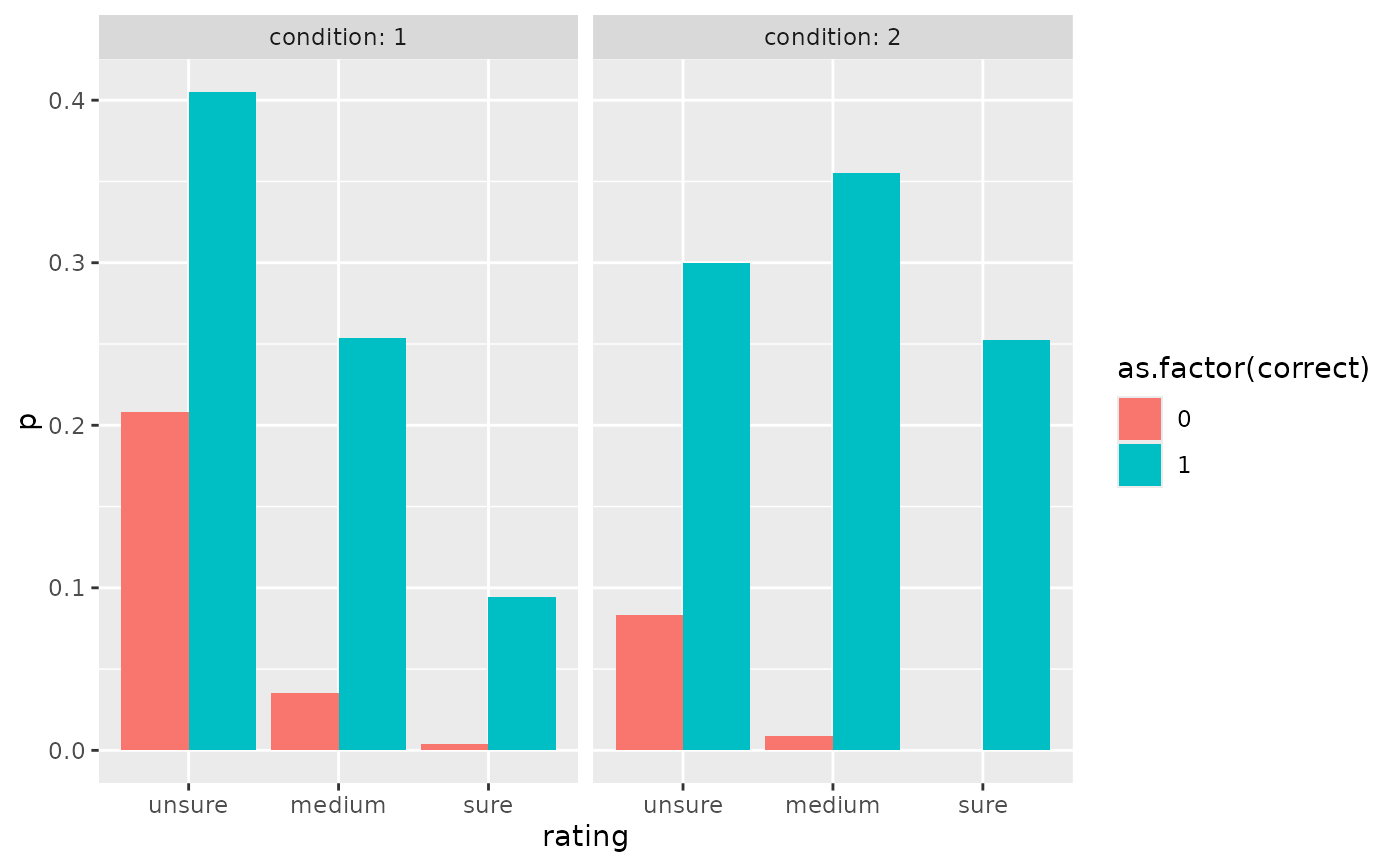 Also computes the Gamma rank correlation between the confidence ratings and condition